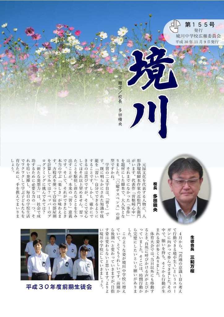 【PDFデーターはこちらから】 ↓URLをクリック http://sakaigawa-koho.sakura.ne.jp/2018/No155.pdf