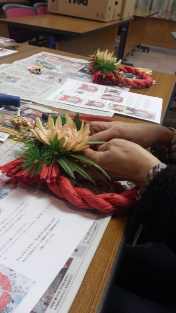 ★講師の先生からは、お正月リースには紙で藁のようになっている素材を使うと色褪せず、扱いも簡単です。