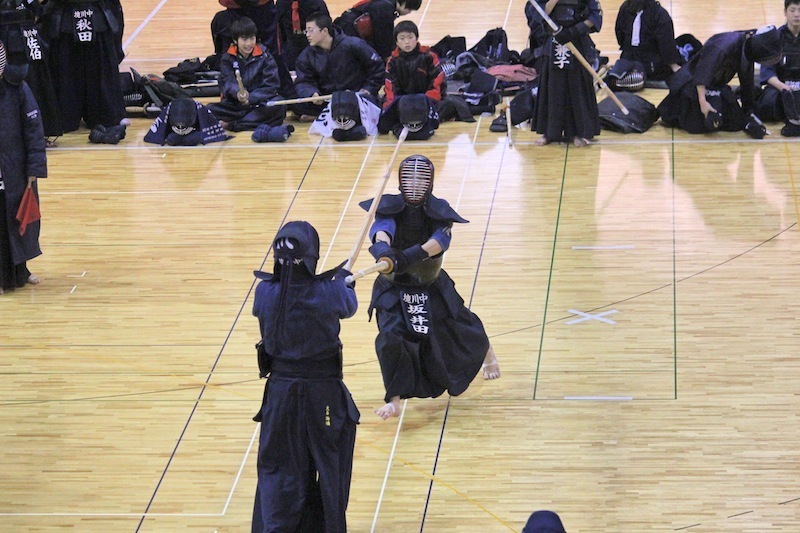 12月27日(土)〜28日(日)に加古川市総合体育館(兵庫県加古川市)において開催された平成26年度加古川親善冬季中学校剣道錬成会に参加しました。 1、2年生の部員の男子、女子各1チームが試合を行いました。