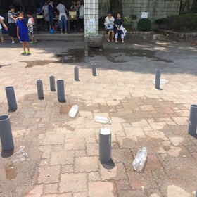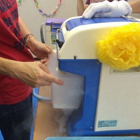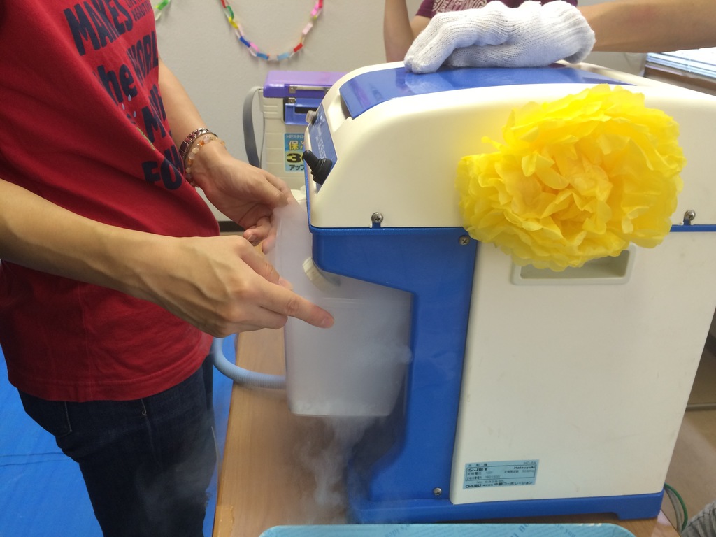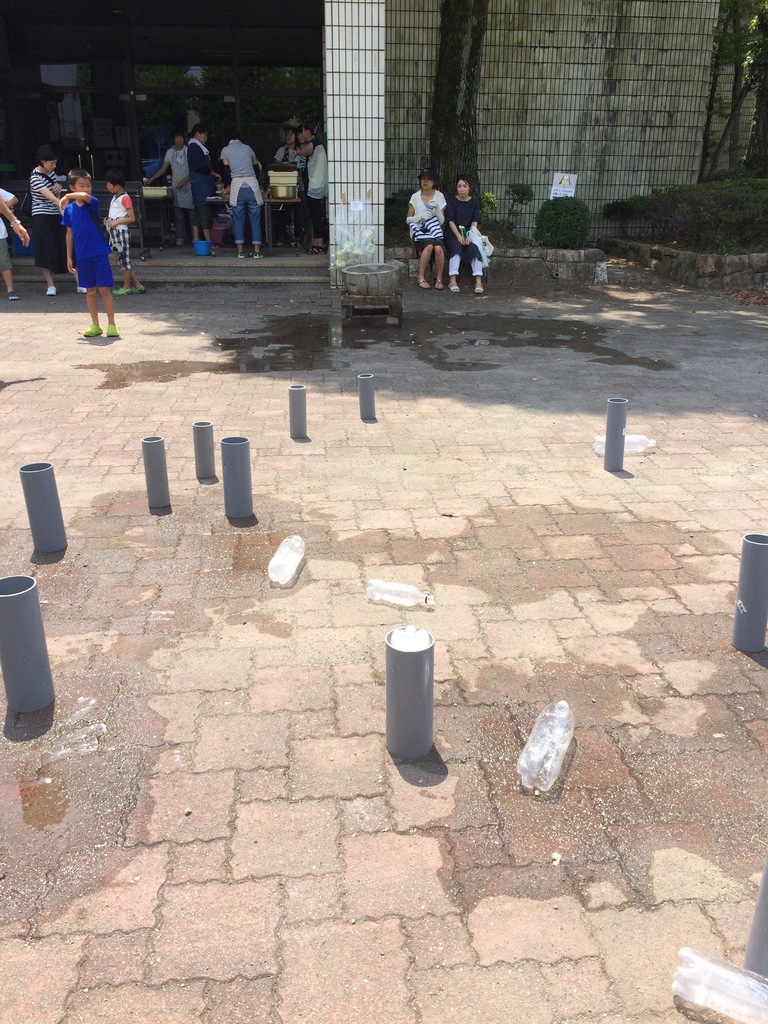 境川中学校PTAは ペットボトルロケットとドライアイスシャーベットの出店です。
