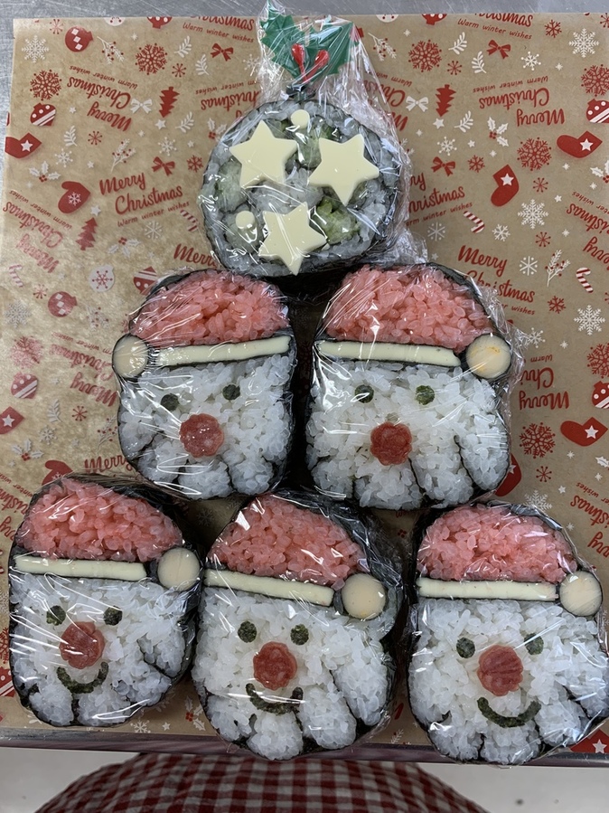 今回は「サンタ巻き」と「リース巻き」の2種類を作りました。