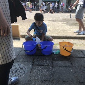 境川中学校PTAは ペットボトルロケット・ドライアイスシャーベット 2ブースの出店でした。